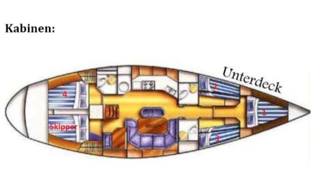 Es stehen insgesamt vier Kabinen zur Unterbringung zur Verfügung. Eine Veranschaulichung der Kabinenlage bietet Ihnen das Bild Nr. 6 unter der Rubrik Unterkunft.