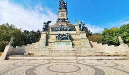 Nach dem gemütlichen Frühstück starten Sie mit den Autos nach Rüdesheim (ca. 45 Min. Fahrzeit). Es geht per Seilbahn direkt hinauf zum Niederwalddenkmal, was über dem Rheintal thront. Von hier aus genießen Sie das imposante Monument und die einzigartige Aussicht auf das obere Mittelrheintal-UNESCO Welterbe und Wandern am Rheinsteig entlang mit immer wieder herrlichen Aussichtspunkten bis nach Assmannshausen.